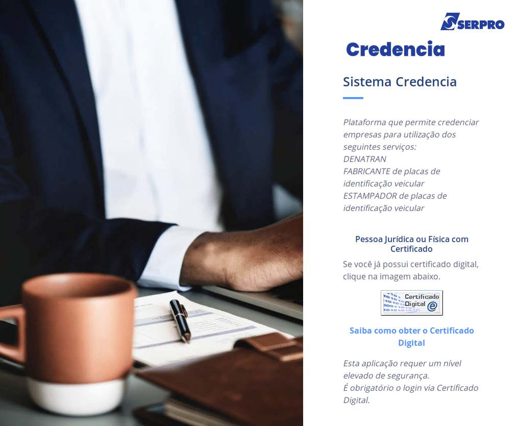 Esta aplicação requer um nível elevado de segurança. Motivo pelo qual, para realizar login é obrigatório a utilização do Certificado Digital. Para isso,