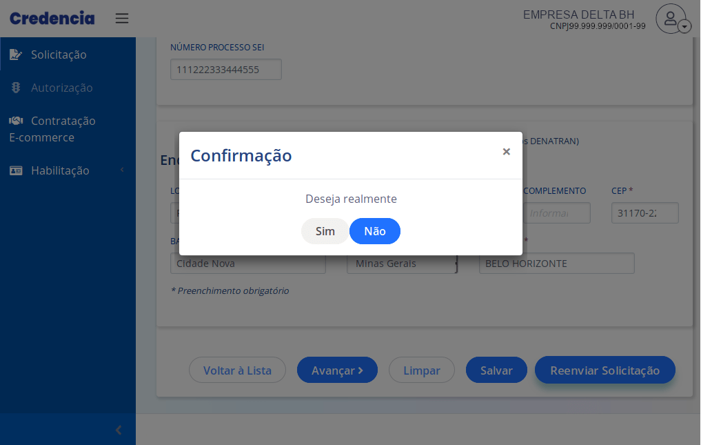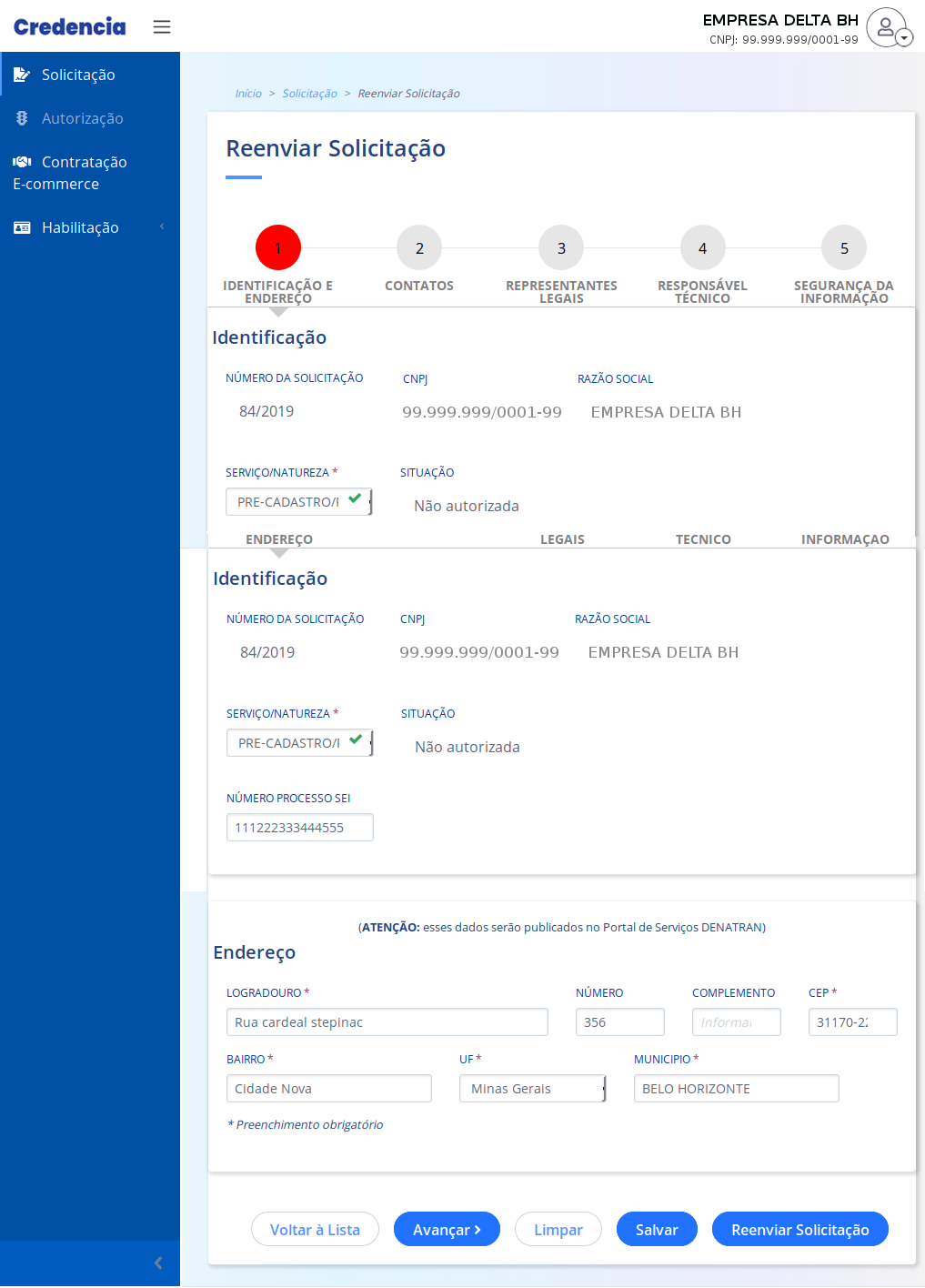 A situação da solicitação é alterada para "Aguardando autorização reenvio". Ou seja, aguardando reanálise do Denatran.